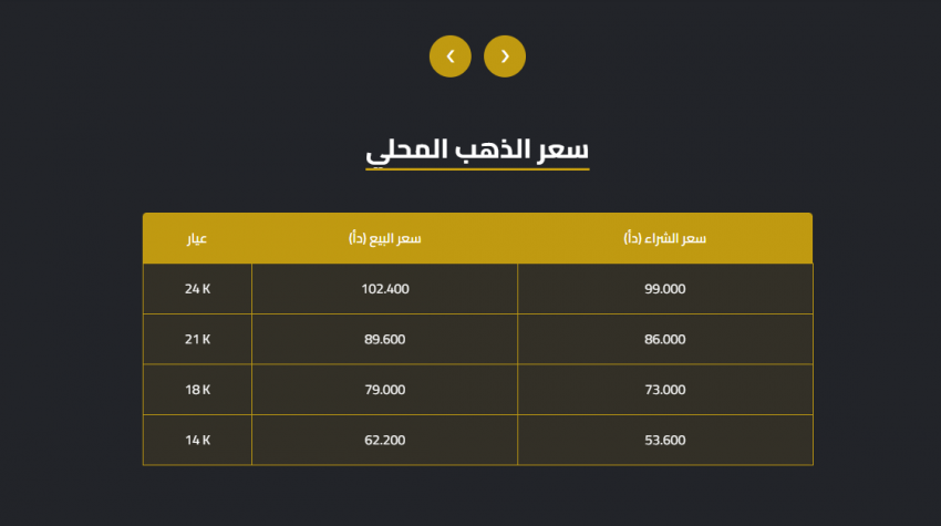 وبلغ سعر الغرام الواحد من الذهب عيارات 24 و18 و 14 لغايات البيع من محلات الصاغة عند 102.4 و 79 و 62.20 دينارا على التوالي.
