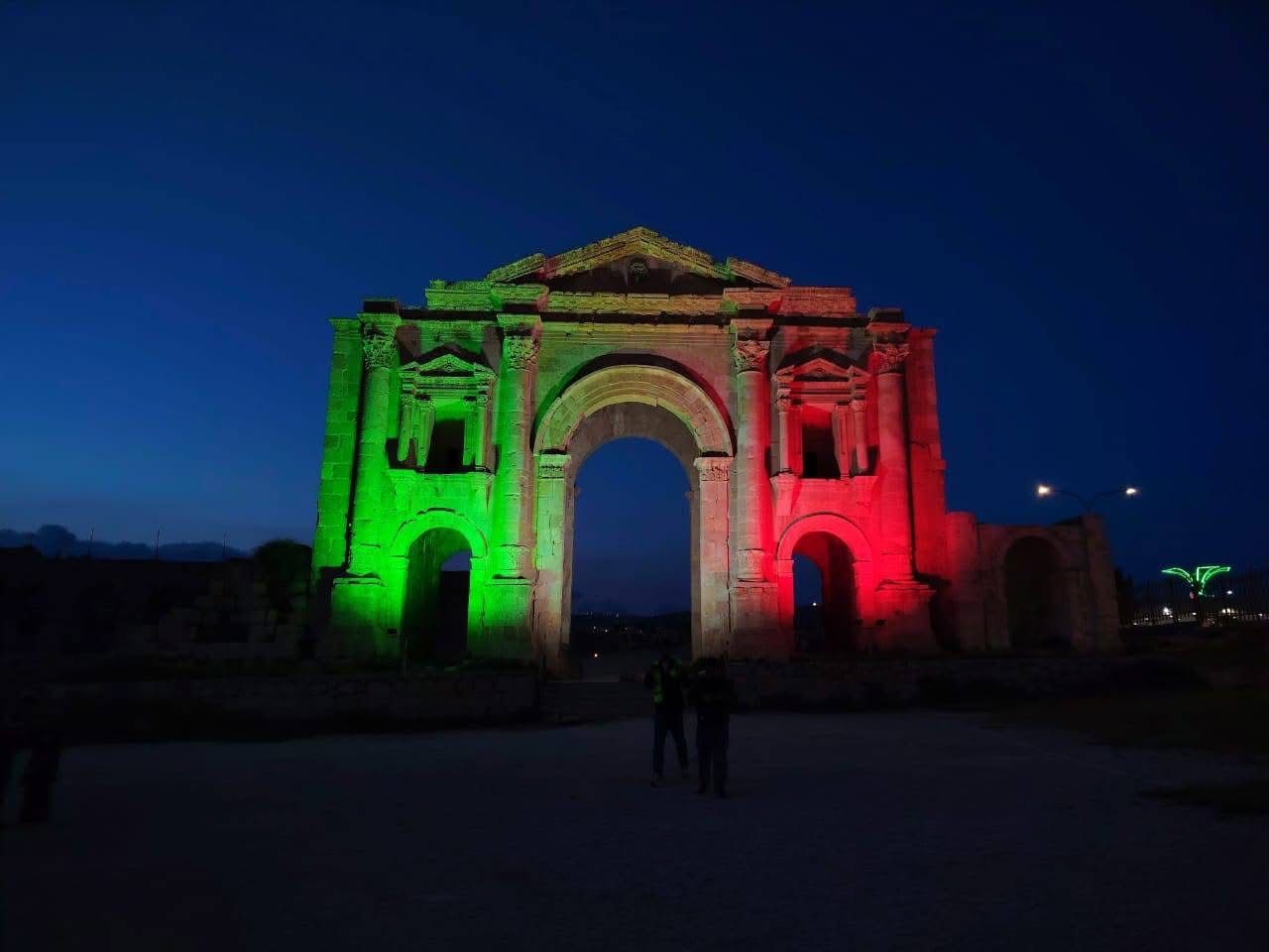 إضاءة مواقع أثرية بألوان العلم الأردني احتفالا بيوم العلم