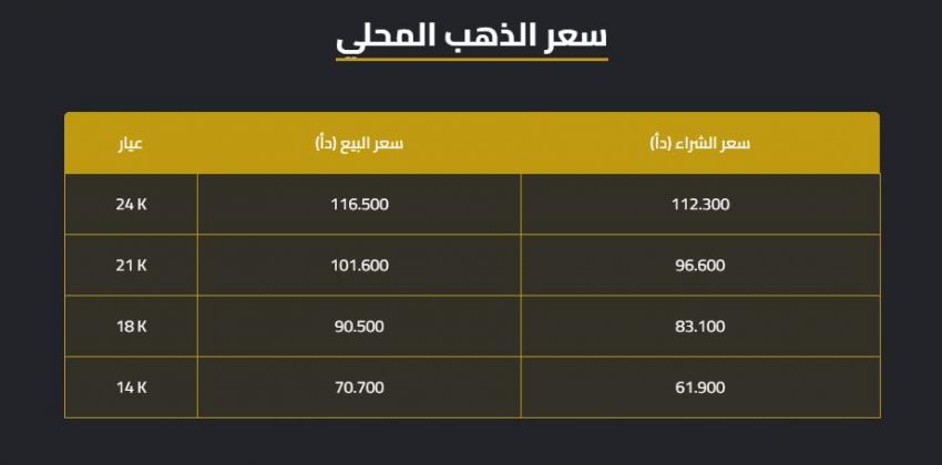 وبلغ سعر الغرام الواحد من الذهب لعيارات 24 و18 و14 لغايات البيع من محلات الصاغة 116.50 و90.50 و70.70 دينارا على التوالي.