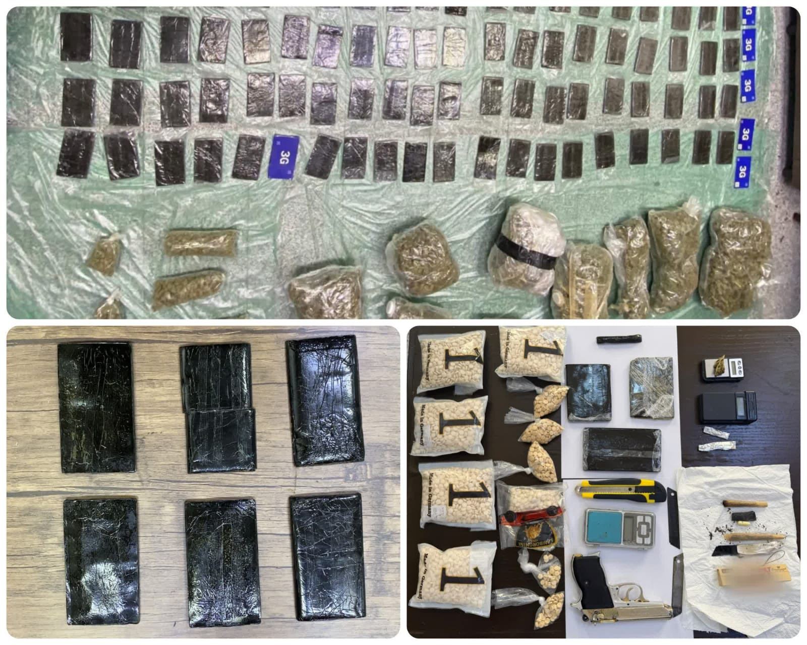 وفي القضية النوعية الثانية في العاصمة أُلقي القبض على 3 تجّار من مروجي المخدرات ويعدون من أخطر مروجي المخدرات في العاصمة وضُبط بحوزتهم 21 كف حشيش و3 كيلوغرام من مادة الماريجوانا و300 غرام من مادة الكريستال المخدرة.