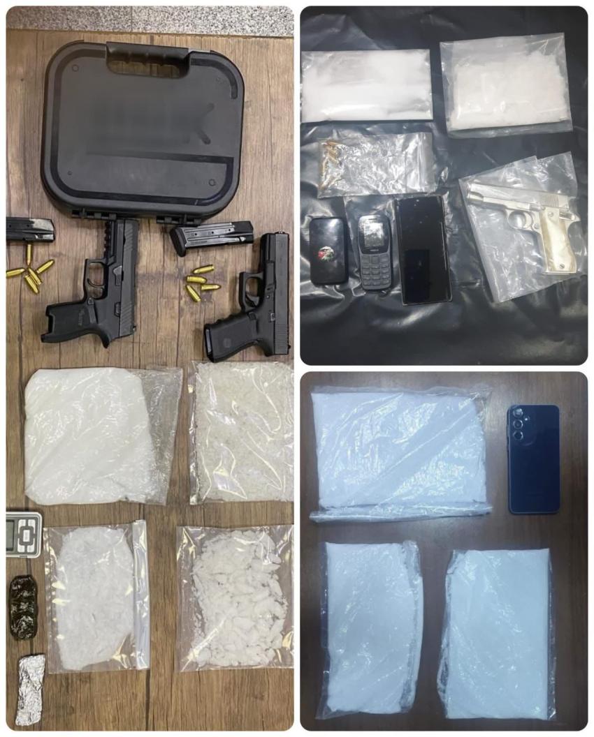 أما ثالث القضايا في العاصمة فقد أُلقي القبض خلالها على شخصين يعتبران من مزودي المروجين بالمواد المخدرة في العاصمة بعد مراقبتهما وتحديد مكان وجودهما وضُبط بحوزتهما كيلو ونصف من مادة الكريستال وثلاثة مسدسات.