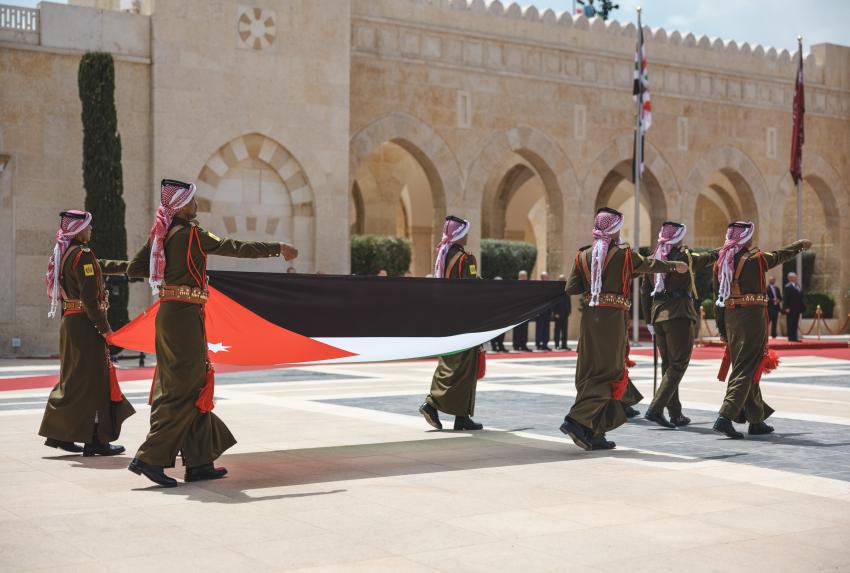 أردني – شهد جلالة الملك عبدﷲ الثاني في قصر الحسينية، اليوم الخميس، مراسم رفع العلم، بمناسبة اليوم الوطني للعلم الأردني، التي تصادف السادس عشر من نيسان من كل عام.