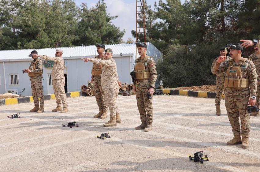 وفي سياق متصل، تابع اللواء الركن الحنيطي تمريناً ميدانياً، اشتمل على عرض لاستخدام الطائرات المسيّرة في تنفيذ المهام العملياتية ومكافحتها ضمن بيئة عمليات افتراضية، حيث استمع قبل تنفيذ التمرين إلى إيجاز عن أهدافه ومراحله التنفيذية، والسيناريوهات العملياتية التي جرى التخطيط لها، والتحديات التي تفرضها طبيعة التهديدات الحديثة، لاسيما في مجال الطائرات المسيّرة وأنظمة مكافحتها التي باتت تشكل محوراً رئيساً في الحروب الحديثة.