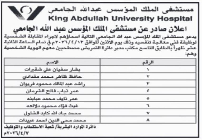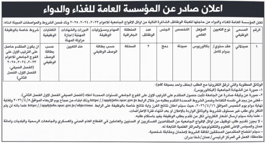 أردني – أعلنت مؤسسات حكومية اليوم الاربعاء، عن حاجتها لتعبئة وظائف حكومية شاغرة، فيما دعت مؤسسات اخرى اشخاصا لاستكمال اجراءات التعيين.