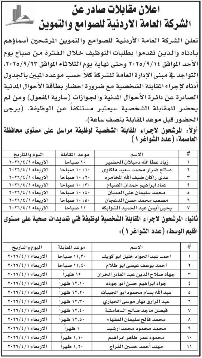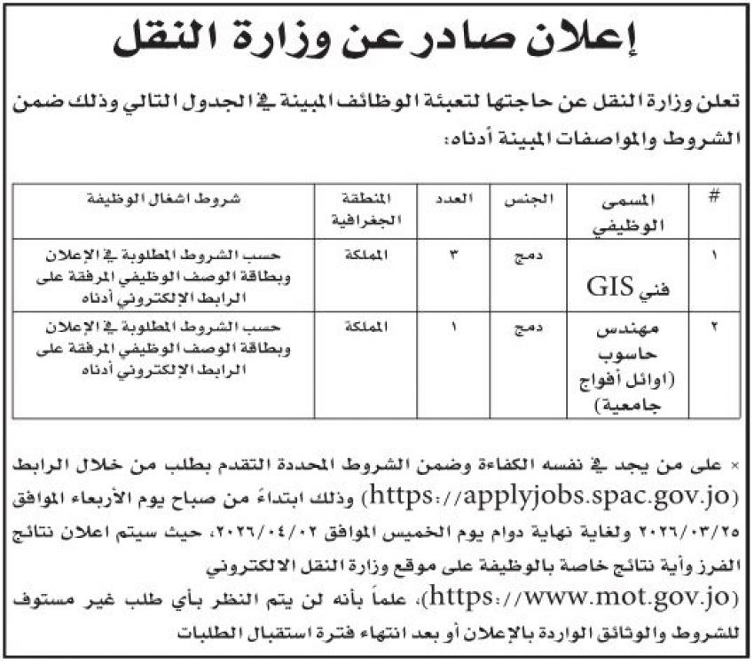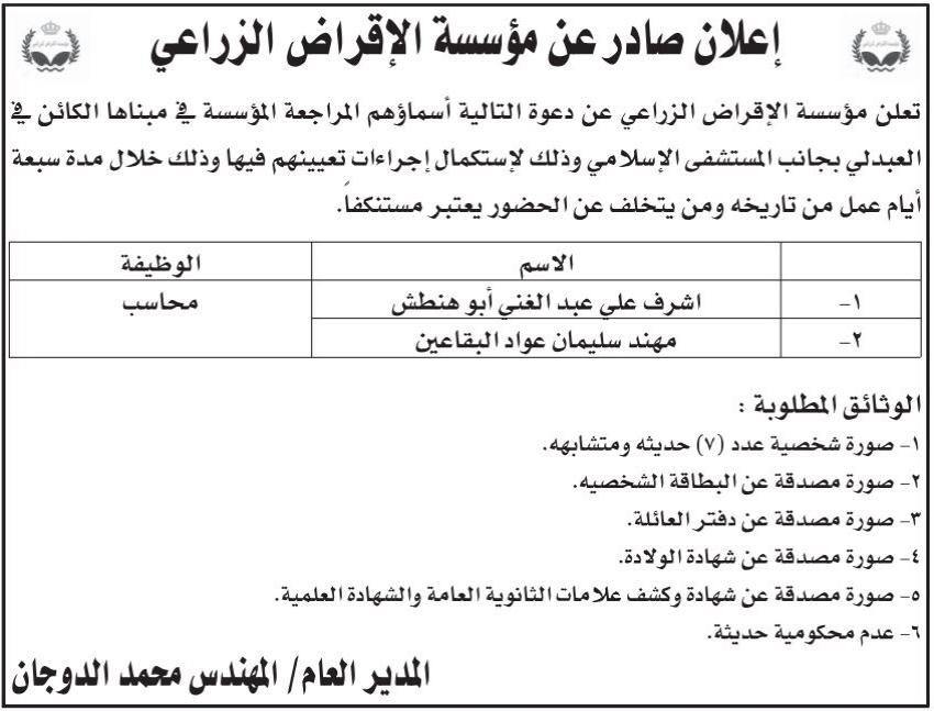 أردني – أعلنت وزارات ومؤسسات حكومية اليوم الاربعاء، عن حاجتها لتعبئة شواغر وظيفية، فيما دعت مؤسسات اشخاصا لاستكمال اجراءات التعيين والمقابلات الشخصية.