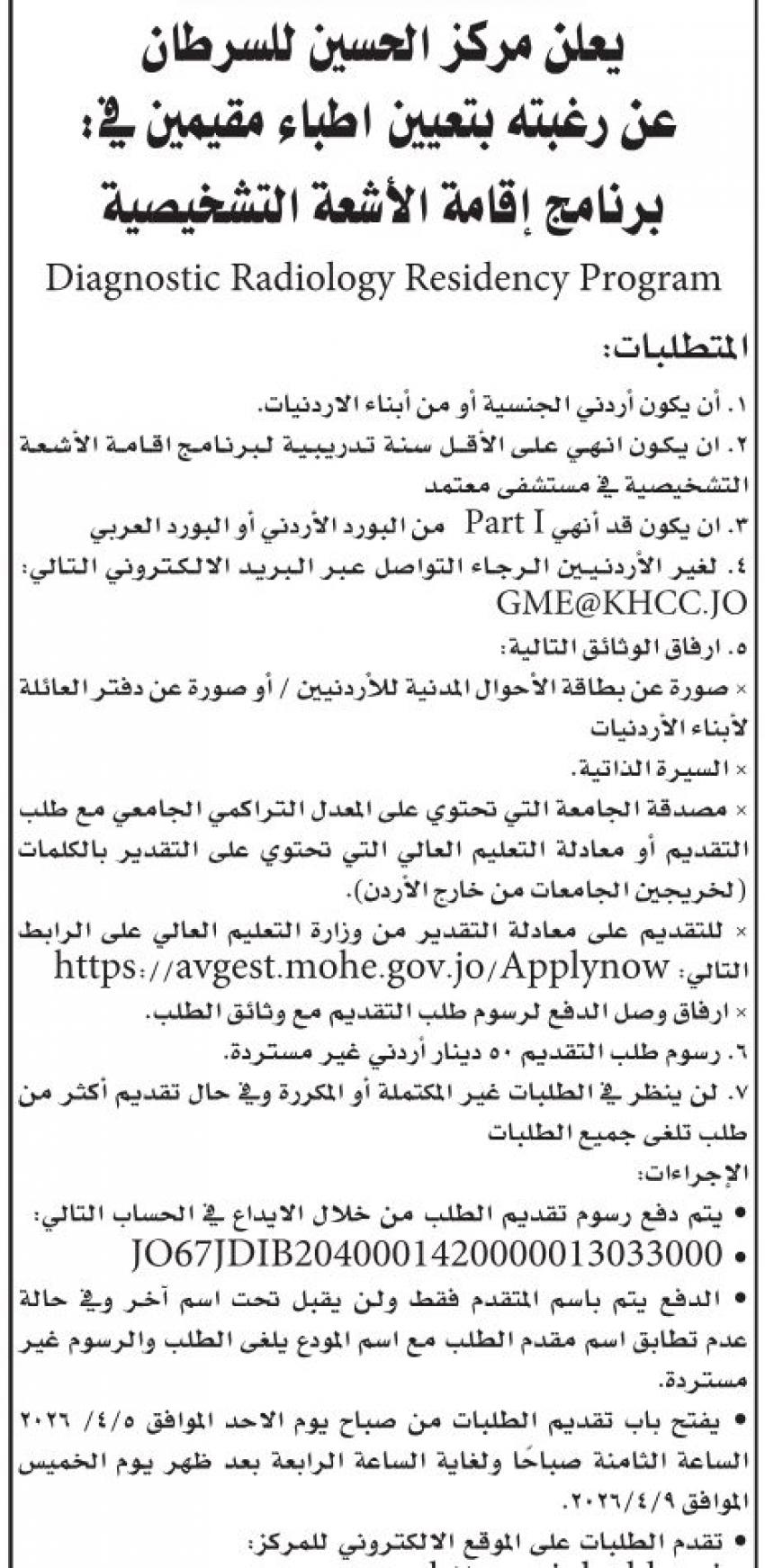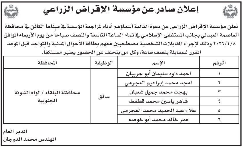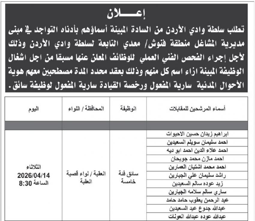 أردني – أعلنت مؤسسات وشركات حكومية اليوم الاثنين عن حاجتها لتعبئة شواغر مختلفة، فيما اعلنت اخرى عن دعوة اشخاص لاجراء المقابلات الشخصية، والفحص الطبي للوظيفة.